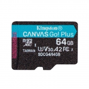 Карта памяти MicroSDXC Kingston Canvas Go! Plus для мобильных устройств на базе Android, экшн-камер, дронов и видеопроизводства в формате 4K. Карты Canvas Go! Plus - для искателей приключений, которые всегда в пути, в поисках идеального момента для съемки. С превосходной скоростью передачи до 200 Мб/с, Canvas Go! Plus ускоряет ваш рабочий процесс и повышает эффективность, чтобы в следующем приключении у вас было больше времени на творчество. Скоростные характеристики U3 и V30 позволяют снимать великолепные видео в формате 4K Ultra HD, не беспокоясь о снижении скорости и пропущенных кадрах, или снимать фотографии в режиме серийной съемки, переход между которыми будет плавным и последовательным. Canvas Go! Карта Plus microSD поддерживает класс производительности приложений A2, чтобы ускорить ваш рабочий процесс и повысить производительность приложений на смартфонах и планшетах. Смотрите на мир как на холст и отправляйтесь в путешествие взяв с собой творчество и вдохновение с Canvas Go! Plus.
