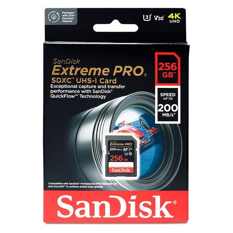Карта памяти SDXC 256Gb SanDisk Extreme Pro UHS-I U3 V30, 200/90 Мб/c (SDSDXXD-256G-GN4IN)
