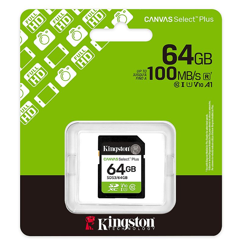 Карта памяти SDXC Kingston Canvas Select Plus обеспечивает надежную производительность со скоростью до 100 МБ/с и идеально подойдет для использования с фотоаппаратами и для записи Full HD видео. Соответствуя классам скорости Class 10, UHS-I U1, V10, она обеспечивает плавную и стабильную работу. Прочная и универсальная, она идеально подходит для повседневных нужд. Карта памяти Canvas Select Plus способна работать в самых суровых условиях, поэтому ее смело можно брать куда угодно с уверенностью, что ваши фотографии, видео и файлы будут в безопасности. Для защиты данных от записи в карте предусмотрен механический переключатель.