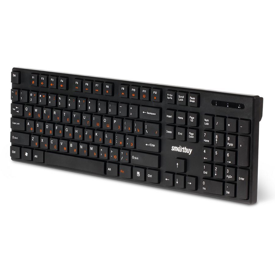 SmartBuy ONE 238 - беспроводная мультимедийная клавиатура для дома и офиса. Модель имеет классическую раскладку и оснащена низкопрофильными клавишами. 12 горячих клавиш, активируемых кнопкой Fn, обеспечивают быстрый доступ к функциям медиаплеера и веб-приложениям. Регулируемый угол наклона позволяет подобрать наиболее удобное положение устройства. Питается устройство от одной батарейки размера AAA, которая входят в комплект поставки. Беспроводное соединение на частоте 2.4 ГГц обеспечивает надежную связь на расстоянии до 10 метров от компьютера.