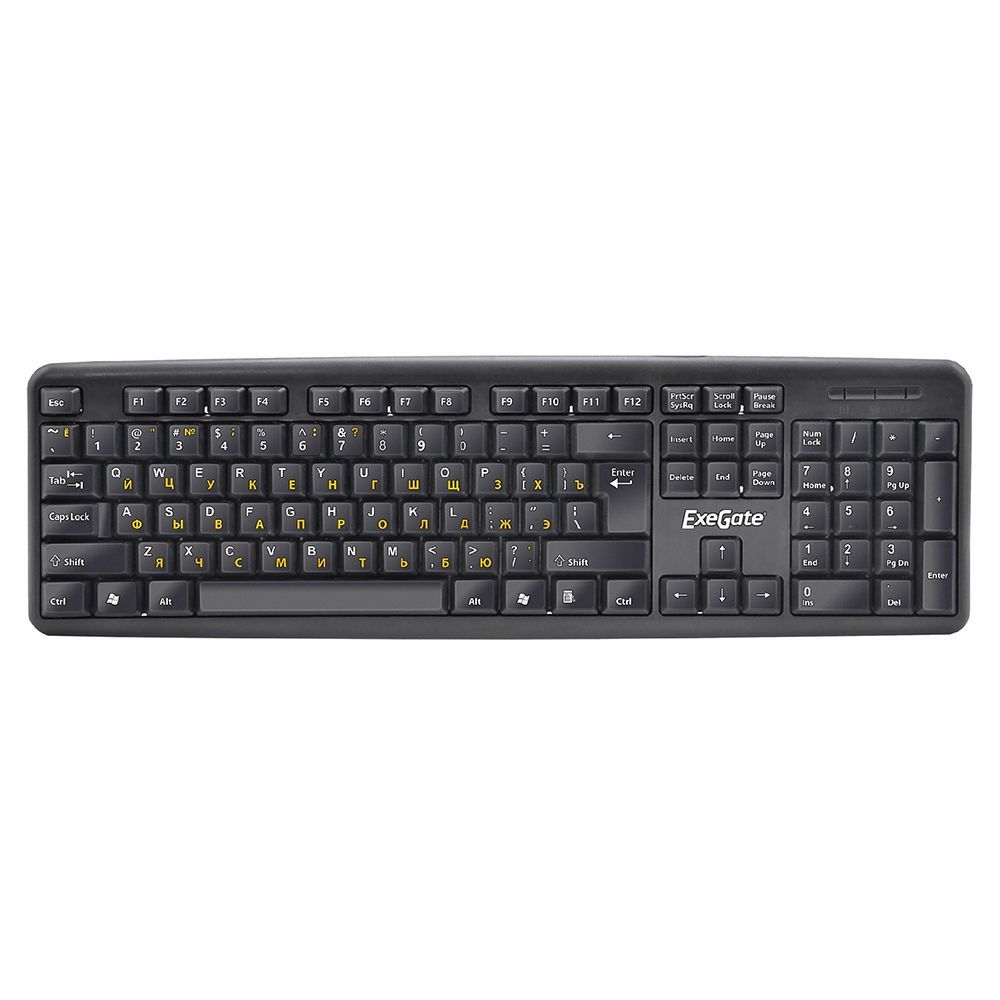 Производитель: Exegate Наименование: Проводная клавиатура Тип клавиатуры: Мембранная Кол-во клавиш: 104 Цвет букв: желтый/белый (рус/лат) Угол наклона: Регулируемый Совместимость с ОС: Windows XP/7/8/8.1/10/11; Mac OS; Linux Интерфейс: USB Длина кабеля: 2,55 м Материал корпуса: Пластик Цвет: Черный Размеры: 443 x 160 x 20 мм Размеры с упаковкой: 460x165x25 мм Вес: 395 г Вес с упаковкой: 420 г