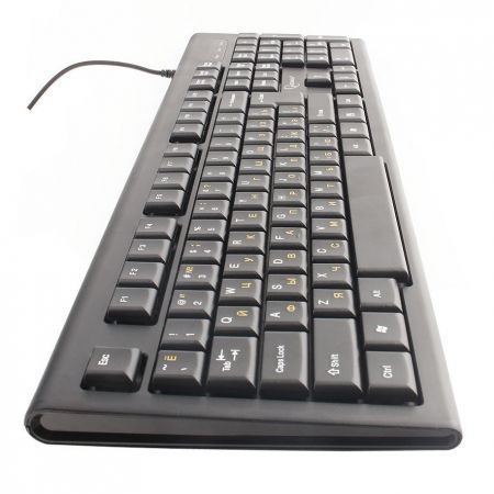 Производитель: Gembird Наименование: Проводная клавиатура Кол-во клавиш: 104 Цвет раскладки: Желтый/белый (рус/лат) Угол наклона клавиатуры: Регулируемый Интерфейс: USB Длина кабеля: 1.45 м Материал корпуса: Пластик Цвет: Черный Размеры: 455 х 155 х 20 мм