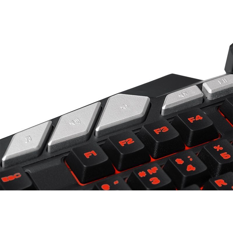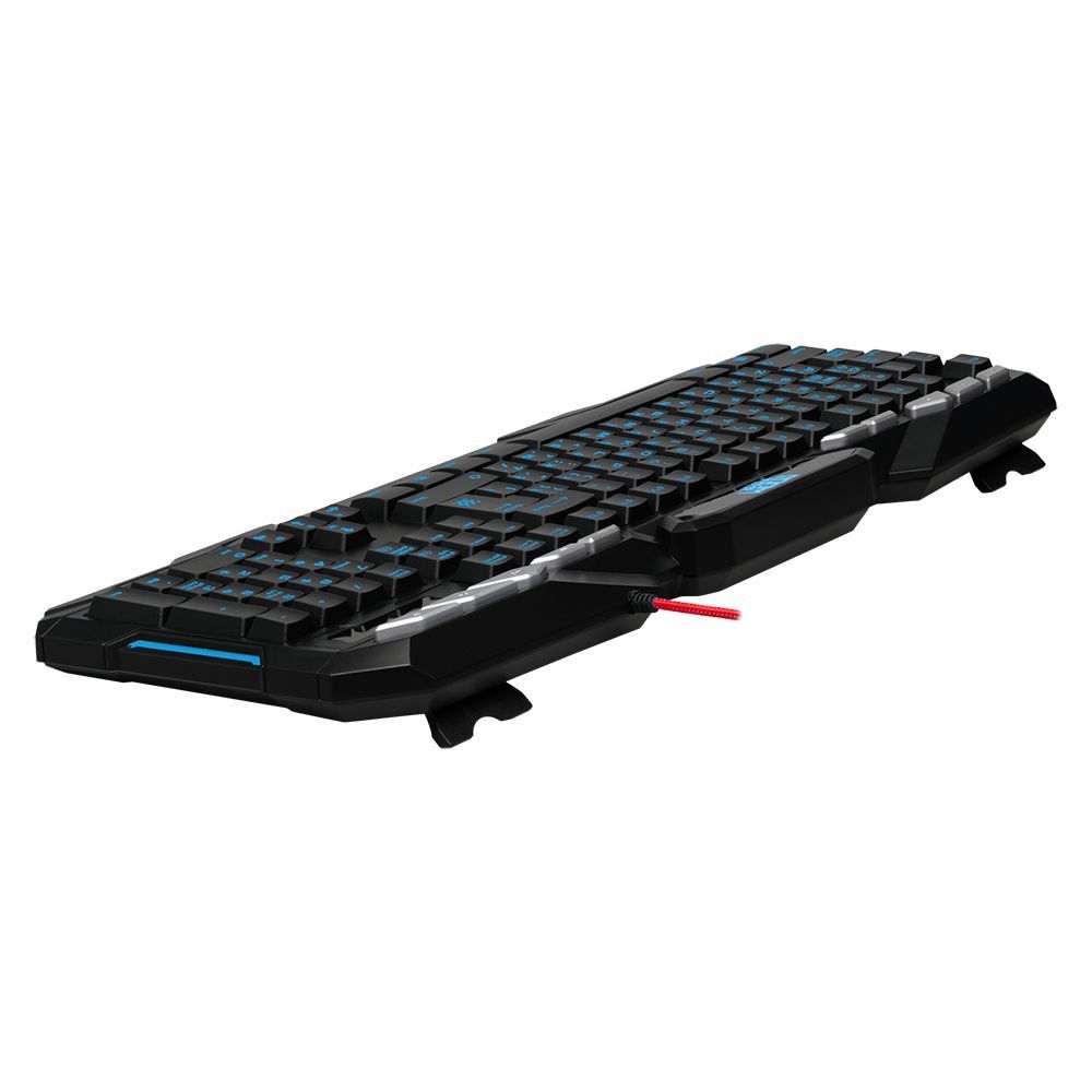 Defender Keeper GK-100DL - мультимедийная игровая клавиатура с подсветкой символов и кнопок. Устройство поддерживает функции блокировки системных клавиш Windows, переключения курсора на кнопки WASD и распознает одновременное нажатие до 19 кнопок. 10 горячих клавиш используются для быстрого доступа к функциям медиаплеера и интернет приложениям. Подсветка позволяет выбрать один из трех цветов (красный, синий, фиолетовый), имеет регулируемую яркость и возможность отключения. Также в клавиатуре предусмотрены ножки, регулирующие угол наклона, и небольшая подставка под запястье для естественного положения рук. Благодаря водоотводящим отверстиям пролитая жидкость легко покидает корпус клавиатуры не причинив вреда ее компонентам. Кабель в прочной тканевой оплетке с позолоченным USB-коннектором обеспечивает надежное подключение и передачу сигнала без помех. Многофункциональное ПО (загружается с сайта производителя) позволяет запрограммировать любую клавишу клавиатуры под требуемые задачи.