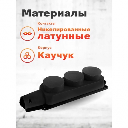 Колодка каучуковая с тремя розетками с заземляющими контактами. Максимальная