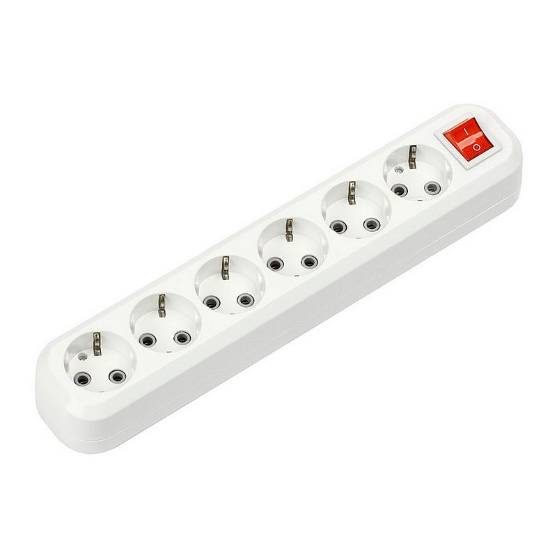 Колодка с 6 розетками с заземлением и встроенным выключателем.