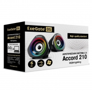 ExeGate Accord 210 - компактная акустическая система с RGB-подсветкой. Колонки выполнены в стильном корпусе и оснащены динамиками суммарной мощностью 6 Вт. Для управления звуком предусмотрен регулятор громкости, размещенный на шнуре. Длинный 1.6 метровый кабель и питание от USB позволяют использовать акустику с ПК или ноутбуком.