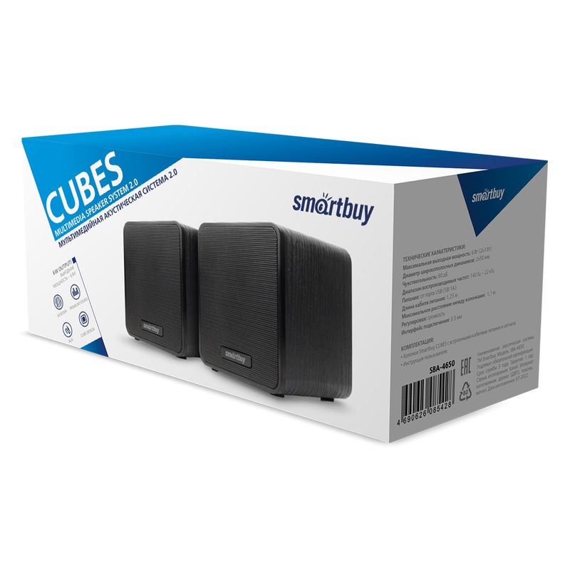 Smartbuy CUBES - портативная акустическая система 2.0 в деревянном корпусе. Кроме компактных размеров, она имеет строгий дизайн с фронтальной металлической сеткой. Колонки CUBES обладают отличным звучанием и выходной мощностью 6 Вт. Регулятор громкости находится на кабеле. Питается акустика от USB.
