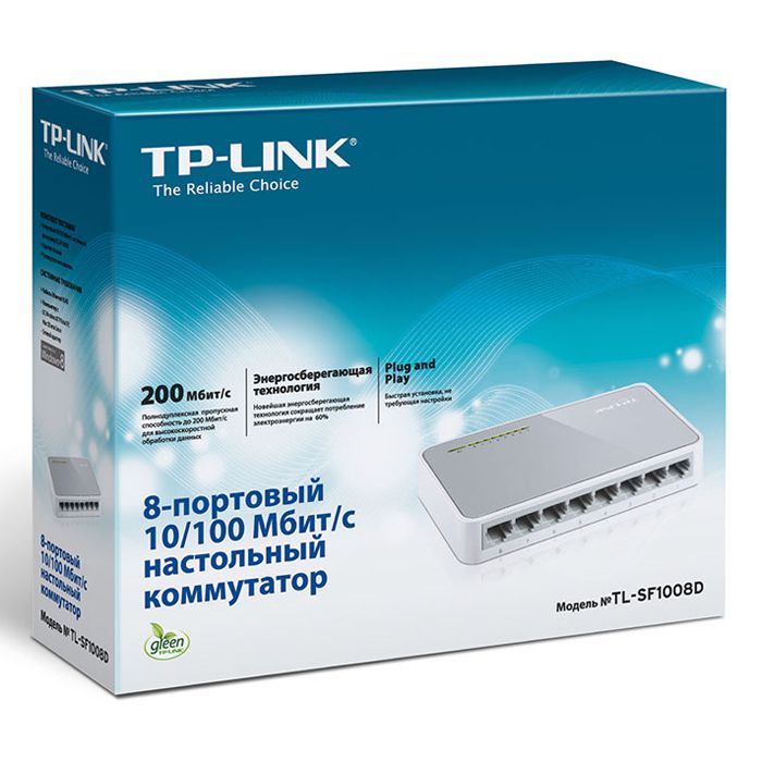 8-портовый коммутатор Fast Ethernet TP-Link TL-SF1008D предназначен для использования дома или в небольшом офисе, а также в рабочих группах. Все порты поддерживают технологию авто-MDI/MDIX, не нужно беспокоится о типе кабеля, просто воткните кабель в устройство. Благодаря использованию неблокирующей архитектуры коммутатор может передавать и фильтровать пакеты на максимально возможной для сетевой среды скорости для обеспечения максимальной пропускной способности. Значительным образом улучшена передача файлов большого размера за счет использования Jumbo-кадров размером 10 Кбайт. Контроль потока IEEE 802.3x для полнодуплексного режима и контроль обратного потока для полудуплексного режима помогают избежать перегрузок и обеспечивают надежную передачу данных, благодаря чему работа коммутатора отличается большой надежностью. Более того, благодаря инновационной энергосберегающей технологии коммутатор TL-SF1008D позволит сберечь до 73%* потребляемой электроэнергии.