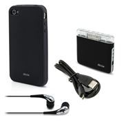 * Набор аксессуаров 5 в 1 для Apple-устройств * Удобные внутриканальные наушники с отменным звучанием * Силиконовый чехол * Защитная пленка для экрана iPhone 4 * Аккумулятор емкостью 1000 мАч * Кабель USB-microUSB