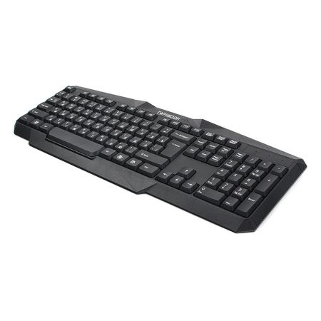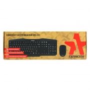 Гарнизон GKS-120 - беспроводной комплект, состоящий из полноразмерной клавиатуры и оптической мыши. Клавиатура имеет классическую раскладку, низкопрофильные клавиши и большую кнопку Enter. Мышь выполнена в эргономичном дизайне и оснащена сенсором со сменным разрешением 800/1000/1200 dpi. Помимо основных кнопок, в мышке предусмотрены две боковые, которые служат для быстрой навигации вперед/назад. Питается комплект от батареек размера АА и ААА. Передача сигнала осуществляется от одного USB-приемника на расстоянии до 10 метров.