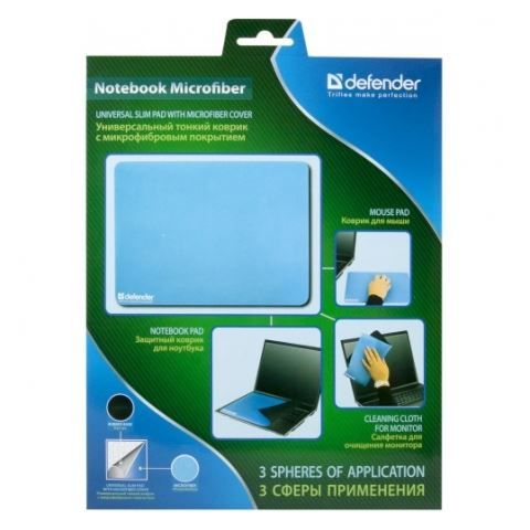 Большой коврик для мыши Defender Notebook Microfiber совмещает в себе 3 функции. Модель может использовать как коврик для мыши, салфетка для очищения поверхности монитора (снимает статическое электричество, не оставляет ворса), прокладка между клавиатурой и экраном ноутбука. Поверхность коврика выполнена из микрофибры и легко чистится.
