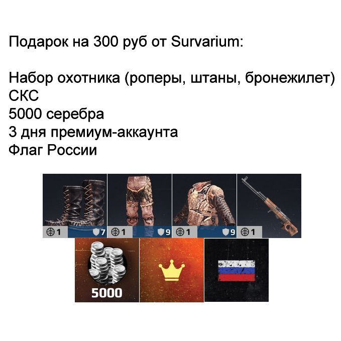 Игровой коврик большого размера Гарнизон GMP-200 с красочным принтом из игры "Survarium" станет приятным подарком всем почитателям этого захватывающего шутера. Коврик подходит для всех типов оптических и лазерных мышей. Долговечное тканевое покрытие обеспечивает гладкое скольжение мыши и четкое позиционирование курсора. Специальная обработка краев коврика препятствует деформации и надолго сохраняет его внешний вид. Нескользящая основа из вспененной резины имеет толщину 3 мм и надежно удерживает коврик на поверхности стола. В комплект входит промокод для игры Survarium на сумму 300 рублей, который включает в себя: набор охотника (куртку, штаны, сапоги), флаг России, СКС, 5 000 серебра и 3 дня премиум-аккаунта.