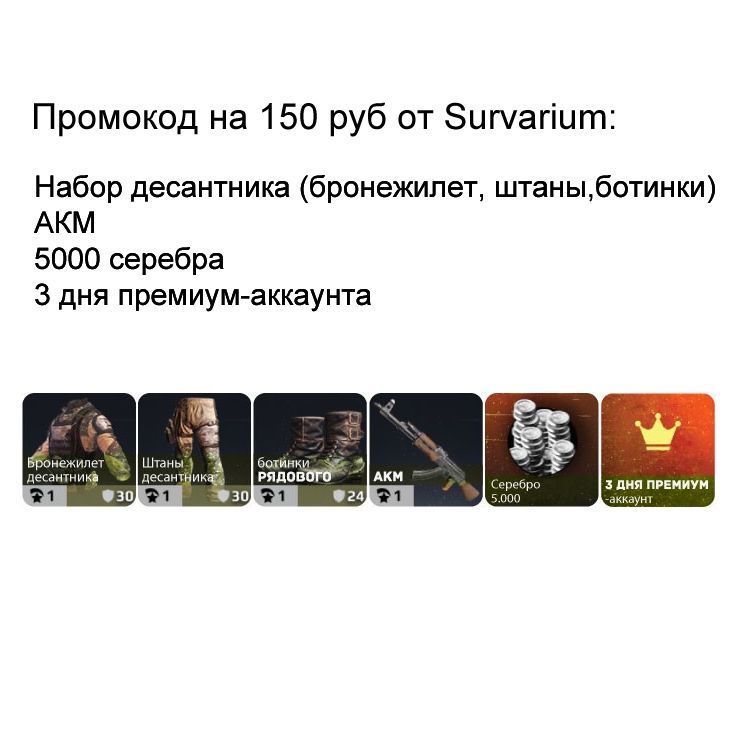 штаны, ботинки , АКМ), 5 000 серебра, 3 дня премиум-аккаунта.
