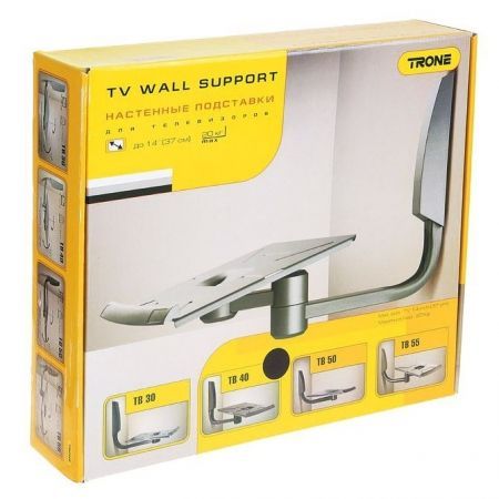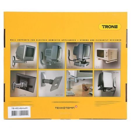 Кронштейн для установки ЭЛТ-телевизора до 14" (35 см) Trone TB-40 позволяет оптимально разместить Вашу технику на стене, тем самым сэкономив полезную площадь. Модель выполнена из металла и имеет поворотную на 180 градусов полку и дополнительную ось вращения, позволяющие развернуть телевизор в нужном направлении. Максимальная нагрузка 25 кг. Комплект поставки включает в себя необходимую фурнитуру и инструкцию. Особенности