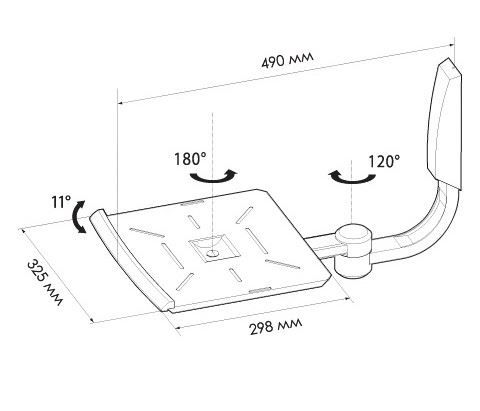 полезную площадь. Кронштейн имеет возможность поворота и наклона. Максимальная нагрузка 25 кг.