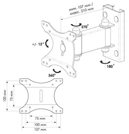 * Посадочные размеры соответствуют стандарту VESA 75 х 75, 100 х 100, 127 х 100