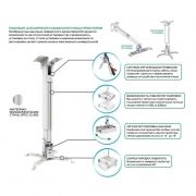Универсальный кронштейн Kron К1А предназначен для настенного или потолочного крепления большинства проекторов бытового и офисного назначения. В модели предусмотрена регулировка наклона и поворота кронштейна в широком диапазоне. Интегрированный в корпус кабель-канал позволяет спрятать и зафиксировать провода для удобства и эстетической красоты. Кронштейн обладает особой конструкцией, которая позволяет при сборке расположить составные части таким образом, что его можно закрепить на стену. Белый цвет кронштейна идеально подходит для большинства потолков помещений. Особенности