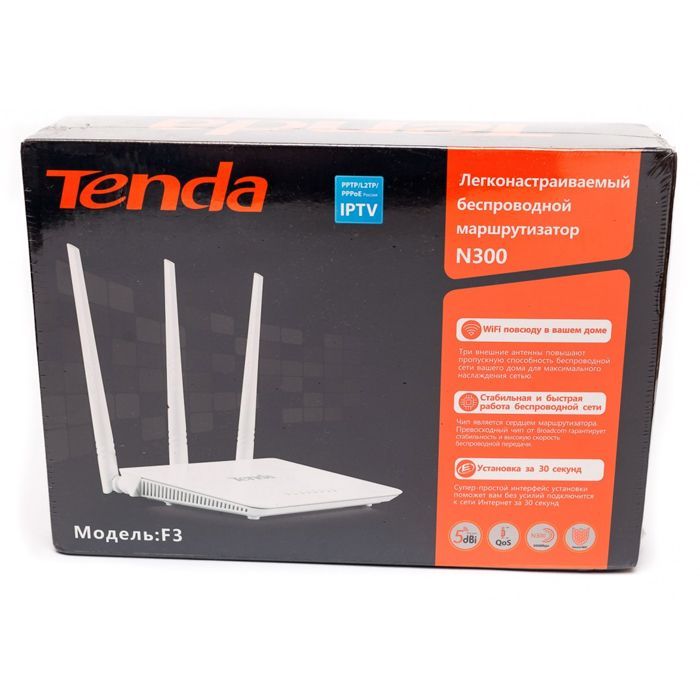 Маршрутизатор Tenda F3 со скоростью передачи данных до 300 Мбит/сек позволяет создать беспроводную сеть в небольшом офисе или квартире. Маршрутизатор работает на чипе Broadcom и подходит для on-line трансляции музыки, просмотра фотографий и потокового HD видео. Три мощные внешние антенны раздают Wi-Fi обеспечивают всем подключенным устройствам надежное соединение даже в самых дальних уголках дома. Интуитивно понятный интерфейс позволяет настроить и получить доступ в Интернет в течение 30 секунд даже неподготовленному пользователю. Поддержка протоколов WPA, WPA2, WPA-PSK/WPA2-PSK повышает уровень безопасности. Контроль полосы пропускания на основе IP адреса позволяет гибко распределять трафик между пользователями.