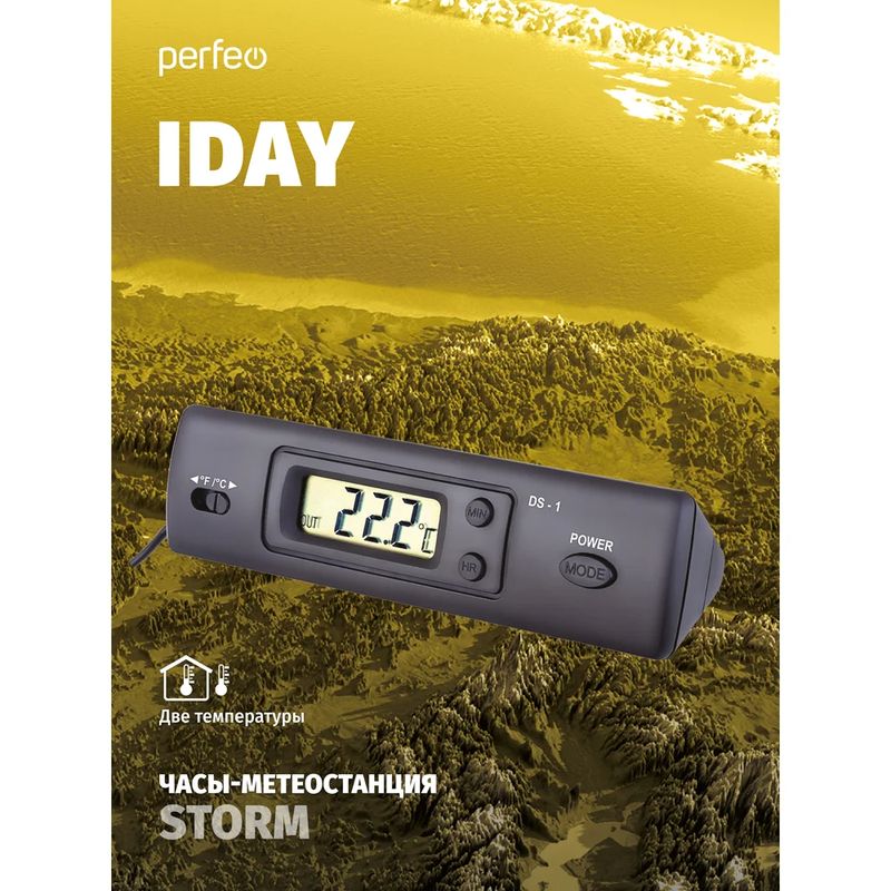 Часы-метеостанция Perfeo «Iday» - ваш главный помощник в доме! Устройство определяет температуру в помещении, а также оснащено выносным проводным датчиком для точного измерения температуры за окном. Perfeo «Iday» имеет несложное кнопочное управление и низкое энергопотребление (одной свежей батарейки ААА хватит на несколько месяцев).