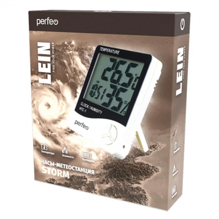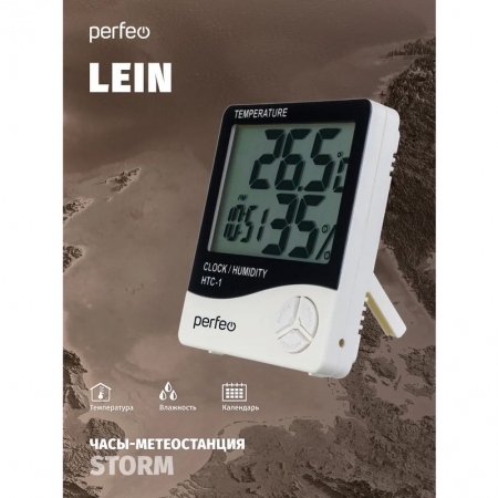 Метеостанция Perfeo PF-HTC-1 Lein с часами и будильником, белая (PF_C3643)