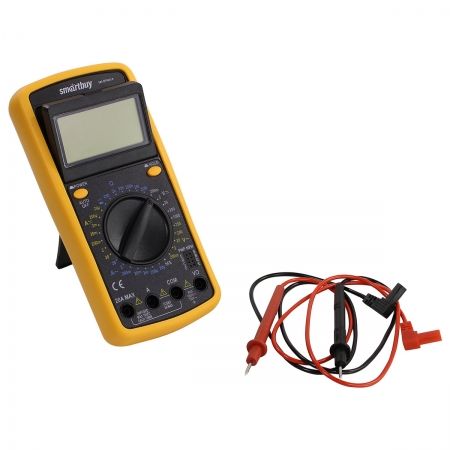 Цифровой портативный мультиметр Smartbuy DT9201A в противоударном корпусе. Прибор предназначен для измерения тока, напряжения, сопротивления. Также в нем имеется возможность тестирования диодов, измерение параметра hFE транзисторов и функция прозвона цепи. Кроме того, предусмотрена кнопка HOLD для записи показаний измеряемых величин. Это идеальный прибор для использования в лабораториях, цехах, для хобби и работы дома. Мультиметр оснащен прорезиненным кожухом, защищающим устройство от механических воздействий. Складная подставка и поворотный дисплей обеспечивают удобное использование прибора. Питается мультиметр от батарейка 9В 6F22 (Крона).