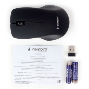 Производитель: Gembird Наименование: Беспроводная мышь Управление: 3 кнопки, включая кнопку-колесо Тип сенсора: Оптический Разрешение: 1000 dpi Частота: 2.4 ГГц Радиус действия: До 10 м Питание: От 2 батареек ААА Интерфейс: USB Материал корпуса: Пластик Цвет: Чёрный Размеры: 114 х 66 х 34 мм Вес: 82 г