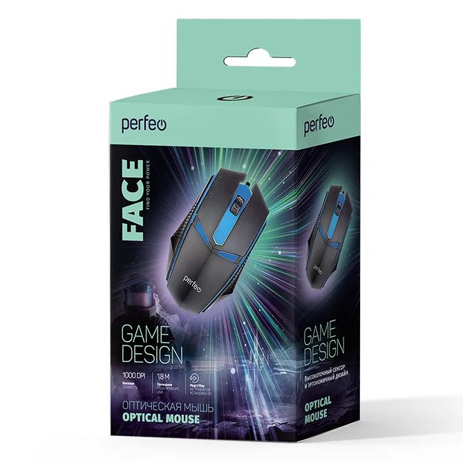 Perfeo FACE - игровая проводная мышь с динамичной подсветкой. Мышь выполнена в эргономичном корпусе, который подходит для управления любой рукой. Оптический сенсор с разрешением 1000 dpi обеспечивает точное позиционирование курсора. Манипулятор подключается к USB-порту компьютера и не требует установки драйверов.