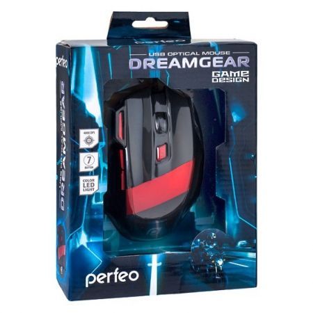 Perfeo "DREAMGEAR" - игровая проводная мышь с 7 кнопками и LED-подсветкой корпуса. Тщательно продуманный дизайн способствует комфортному управлению мышью и препятствует ее выскальзыванию из руки при интенсивных движениях. Оптический сенсор со сменным разрешением 1200/2400/3200/4800 dpi позволяет использовать манипулятор для работы в различных приложениях и обеспечивает точное позиционирование курсора для ведения прицельной стрельбы по противнику. Помимо основных, в мыши предусмотрены дополнительные боковые кнопки и кнопка двойного клика. Мышь подключается к USB-порту компьютера и не требует установки драйверов.
