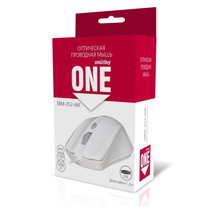 SmartBuy ONE 352 - эргономичная проводная мышь для дома и офиса. Модель имеет симметричный дизайн, что позволяет управлять мышью как левой, так и правой рукой. Высокоточный сенсор обеспечивает уверенную работу манипулятора практически на любых поверхностях. С помощью отдельной кнопки легко изменить разрешение сенсора в диапазоне 800/1200/1600 dpi. Мышь подключается к USB-порту компьютера и не требует установки драйверов.