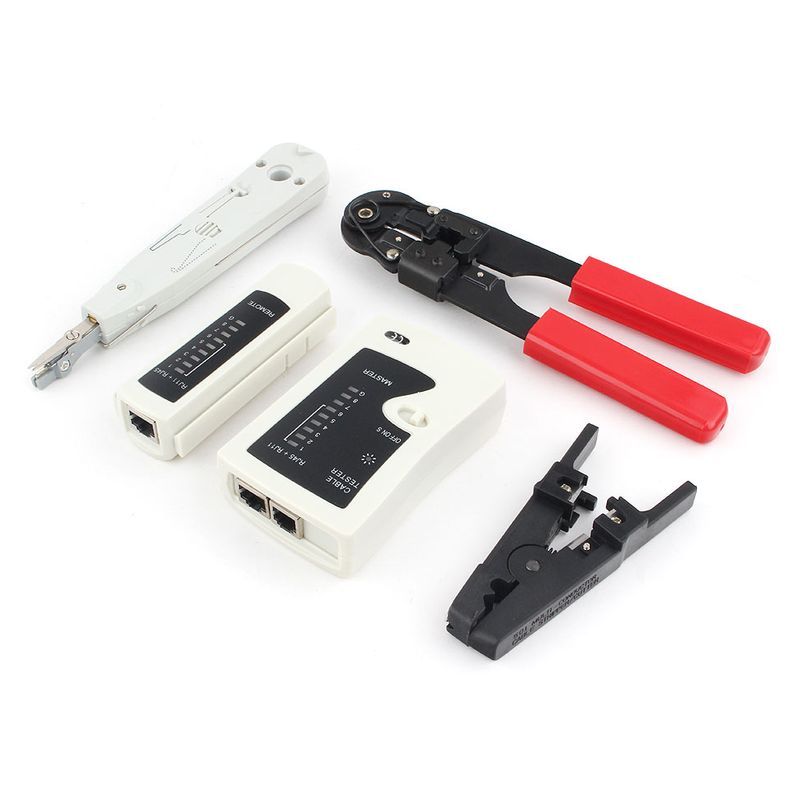 Набор инструментов Cablexpert TK-NCT-01 для работы с локальной сетью. В комплект входят: инструмент для обрезки проводов и обжима разъемов 8P8C / RJ45, инструмент для ударного монтажа контактов, кабельный тестер (RJ45) и инструмент для зачистки проводов (3.2 - 9 мм). Набор отличается высоким качеством и поставляется в удобном кейсе.