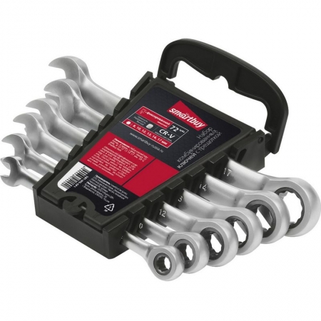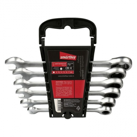 Набор комбинированных ключей Smartbuy, состоящий из 6 предметов. В набор входят ключи с размерами 8-10-12-13-14-17 мм. Особенностью данного набора является наличие фиксированной трещотки на 72 зуба, что обеспечивает удобство и быстроту работы. Инструмент выполнен из качественной хромованадиевой стали, что гарантирует прочность и продолжительный срок службы. Технические характеристики
