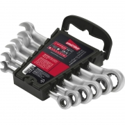 Производитель: Smartbuy Наименование: Набор комбинированных ключей Размер ключа: 8, 10, 12, 13, 14, 17 мм Особенности: с трещоткой 72 зуба Материал: CR-V Покрытие: Никелирование Вес: 0.7 кг