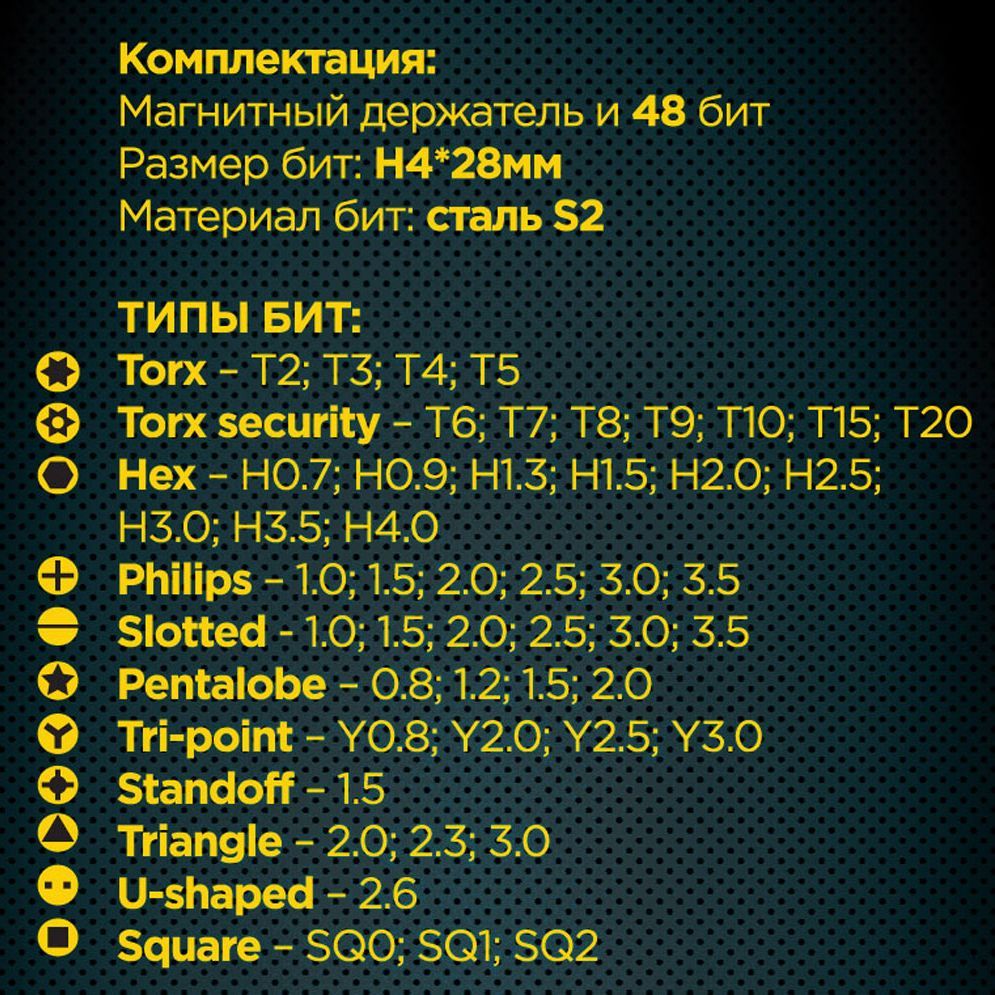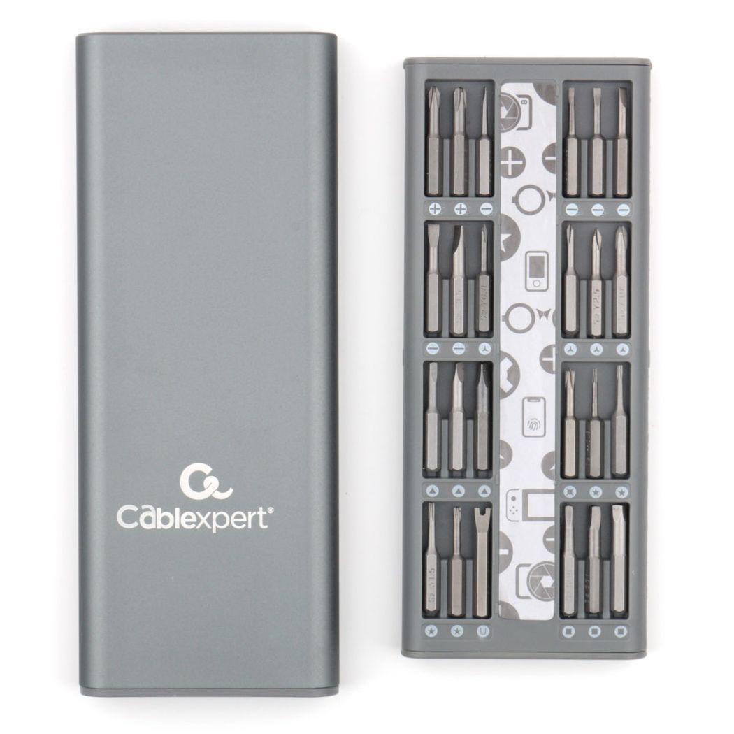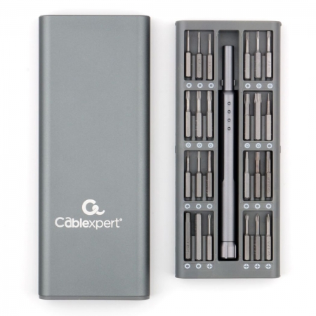 Cablexpert TK-SD-08R - набор из отвертки с магнитным держателем и 48 бит. Биты выполнены из легированной стали S2. Эргономичная рукоятка отвёртки имеет нескользящее покрытие и вращающуюся верхушку держателя, которая обеспечивает комфорт работы даже с "закисшими" винтами. Для удобного хранения и транспортировки набор укомплектован пластиковым кейсом с магнитными фиксаторами для каждой биты.