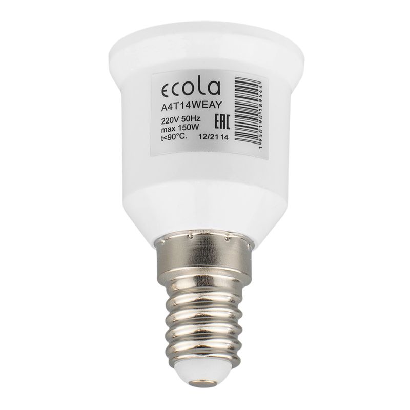 Переходник цокольный Ecola применяется для ламп с цоколем E27 для установки в светильник с цоколем E14. Товар распространен в сфере строительства, при монтажных работах и в быту, когда нужно заменить один тип цоколя лампы на другой. Резьбовая система быстрого соединения электрических ламп обеспечивает надежный контакт. Продуманная конструкция прибора гарантирует надежную защиту от поражения электрическим током при установке и эксплуатации.
