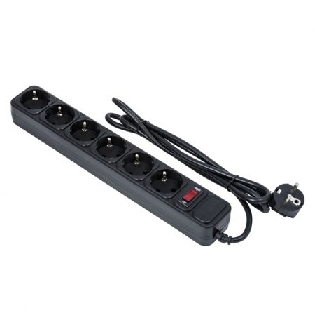 выполнен из ударопрочного, негорючего, влагостойкого пластика и оснащен двумя розетками. Максимальная суммарная мощность