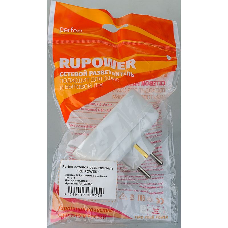 Переходник двойник Perfeo «RUPOWER» используется для подключения двух электроприборов к одной розетке. Корпус