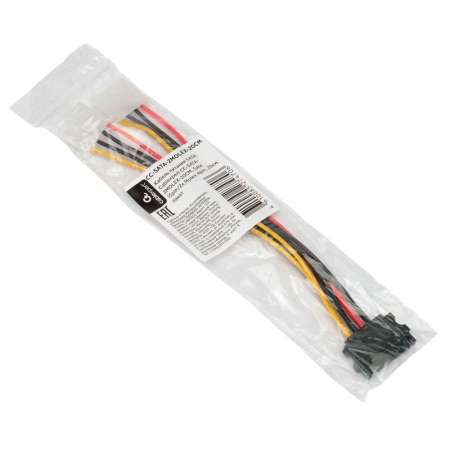 Кабель-разветвитель предназначен для питания двух устройств с разъемом Molex от одного разъёма SATA. Длина кабеля 20 см.