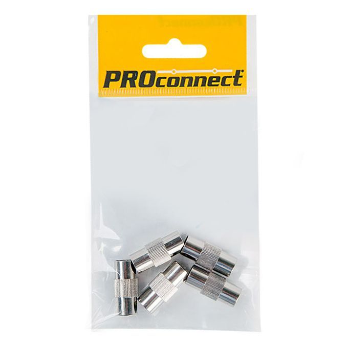 Переходник TV штекер - TV штекер PROconnect предназначен для соединения двух ТВ кабелей волновым сопротивлением 50 или 75 Ом, на концах которых расположены гнезда ТВ-разъема. Применяется главным образом для подключения эфирного, кабельного и спутникового телевидения к телевизионному оборудованию.