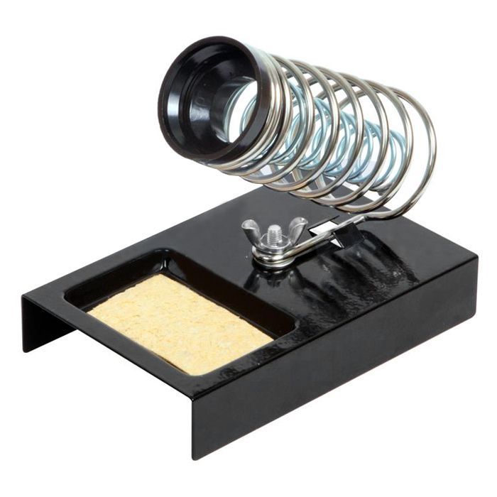 Производитель: Rexant Наименование: Подставка под паяльник Материал корпуса: Сталь+хромированный держатель Дополнительно: Ложемент для губки Цвет: Черный Комплектация