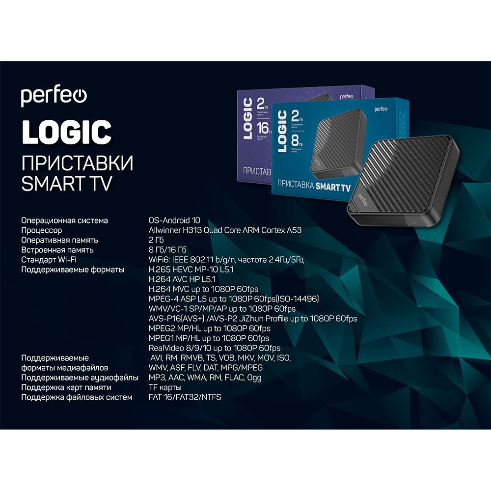 Приставка Smart TV Perfeo Logic, 2G/8Gb, Allwinner H313, Bluetooth, Android 10 (PF_A4554-C)