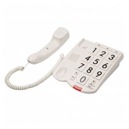 * Крупные кнопки с большими четкими цифрами * Удобная трубка * Оптимальное расположение микрофона и динамика * 3 номера для быстрого однокнопочного набора в памяти * Крупный световой индикатор входящего звонка * Регулировка громкости звонка * Регулировка громкости динамика в трубке телефона * Импульсный и тональный набор номера * Пауза, сброс, повтор номера Технические характеристики