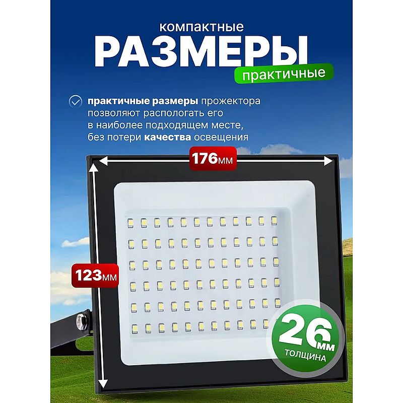 Прожектор подходит для подсветки крупных объектов или создания акцентного освещения на участке. Использование светодиодного прожектора уличного удобно как в повседневной жизни, например на даче или во время отдыха на природе, так и для временных нужд например, при организации кемпинга или работ в вечернее время.