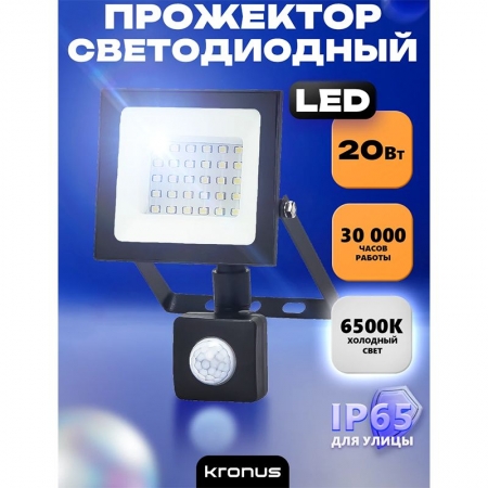 Прожектор светодиодный с датчиком движения Kronus 20W/6500K/IP44, черный (KRS-02-0017)