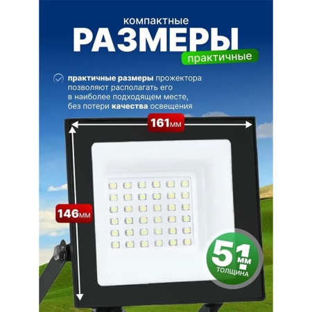 Прожектор подходит для подсветки крупных объектов или создания акцентного освещения на участке. Использование светодиодного прожектора уличного удобно как в повседневной жизни, например на даче или во время отдыха на природе, так и для временных нужд например, при организации кемпинга или работ в вечернее время.