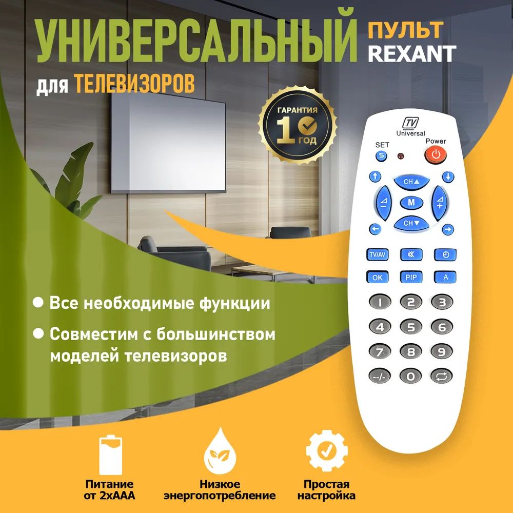 Универсальный пульт ДУ Rexant RX-188 совместим с большинством марок и моделей современных телевизоров. Пульт имеет функции Меню/Настройки/Стандартные настройки/Субтитры/Канал/Громкость/Язык и многие другие, что обеспечивает максимально удобное управление телевизором. Отличается низким энергопотреблением. Удобен и прост в настройке.
