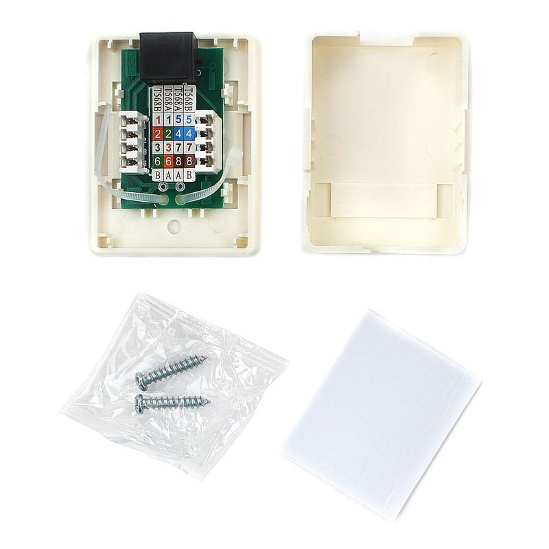 Накладная сетевая розетка RJ-45. Подходит для одножильной или многожильной витой пары UTP 5е. Отличается высоким качеством, повышенной надежностью и удобством в использовании.
