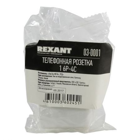 Главная / Кабели, разъемы, адаптеры / Адаптеры, переходники, разъемы / Телефонные RJ11-12 / Розетка телефонная накладная RJ11, 1 разъем 6p4c, белая, Rexant (03-0001)