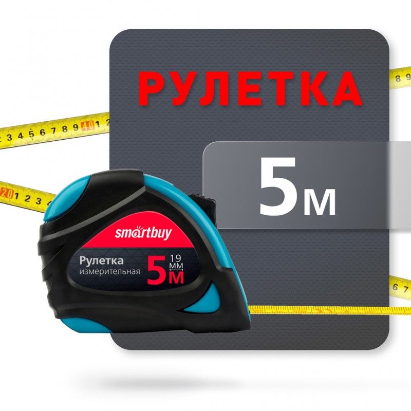 Рулетка измерительная 5м х 19мм, прорезиненный корпус, Smartbuy (SBT-MTP-519P2)