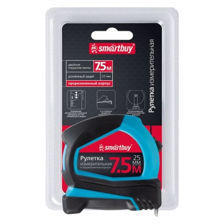 Измерительная рулетка 7.5 м x 25 мм Smartbuy пригодится для проведения линейных измерений предметов и расстояний. Яркая лента с двухслойным покрытием, подвижной усиленный зацеп и надежный сматывающий механизм обеспечивают длительную и удобную работу. Прорезиненный корпус защитит от повреждений в случае падения и обеспечивает надежный хват. Особенности