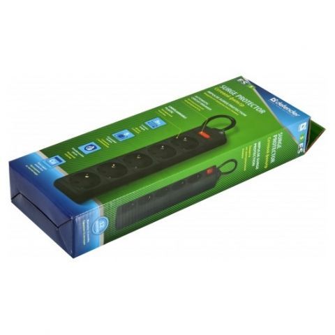 Сетевой фильтр Defender DFS 155, 5 м, 6 розеток, черный (99496)